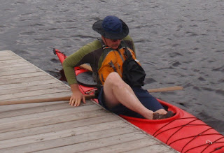 The dock has a special lower dock to the side, making it easy to get into a kayak using the paddle brace. The key is to start from a sitting position on the dock. The boat hand anchors the paddle to the boat, one foot slides in first, then the butt makes a quick move into the seat.